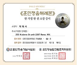 《해례본》10호 소장자 김수철 국제한민족총연맹 총재