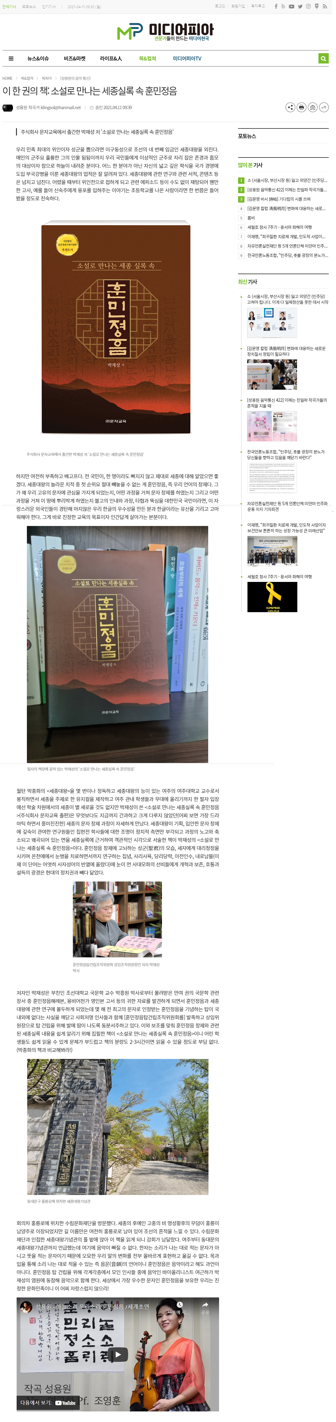이 한 권의 책: 소설로 만나는 세종실록 속 훈민정음 - 미디어피아 (mediapia.co.kr)