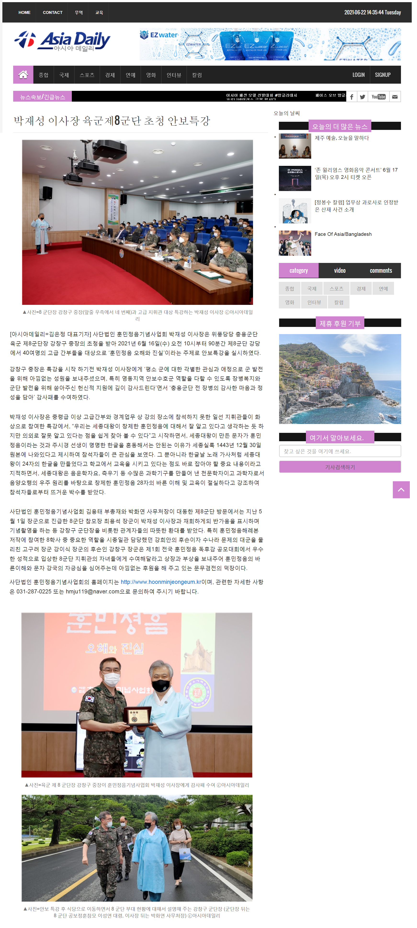 [아시아데일리] 박재성이사장 육군제8군단 초청 안보특강