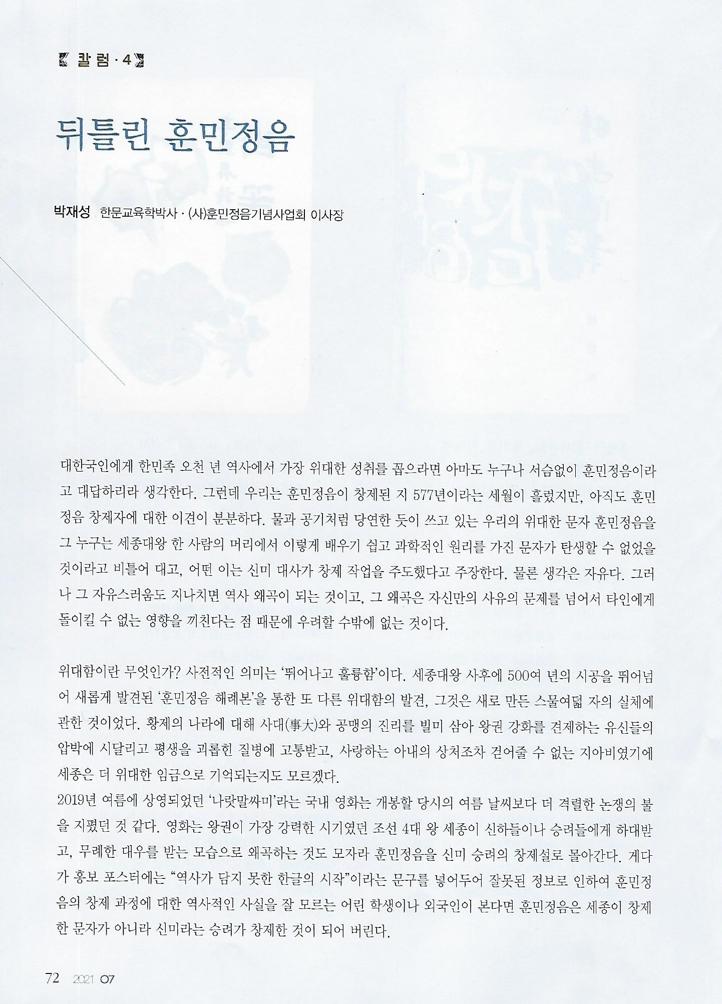 [용인신문]문화초대석(훈민정음기념사업히 박재성 이사장)