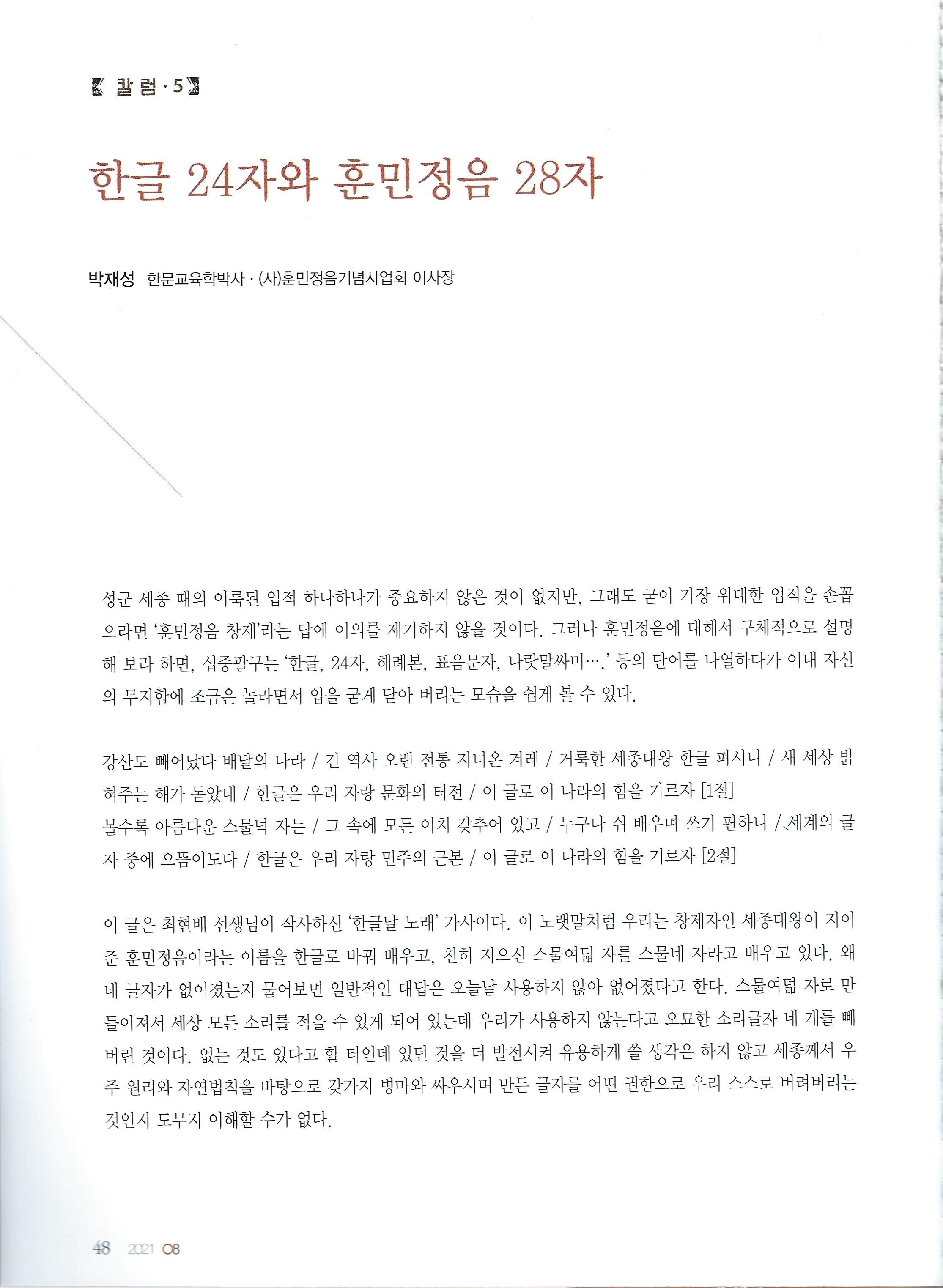 [월간서예문인화]한글 24자 훈민정음 28자