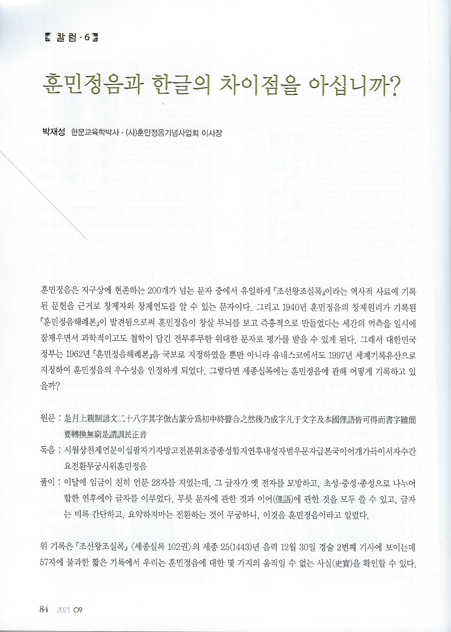 [월간서예문인화]훈민정음과 한글의 차이를 아십니까?