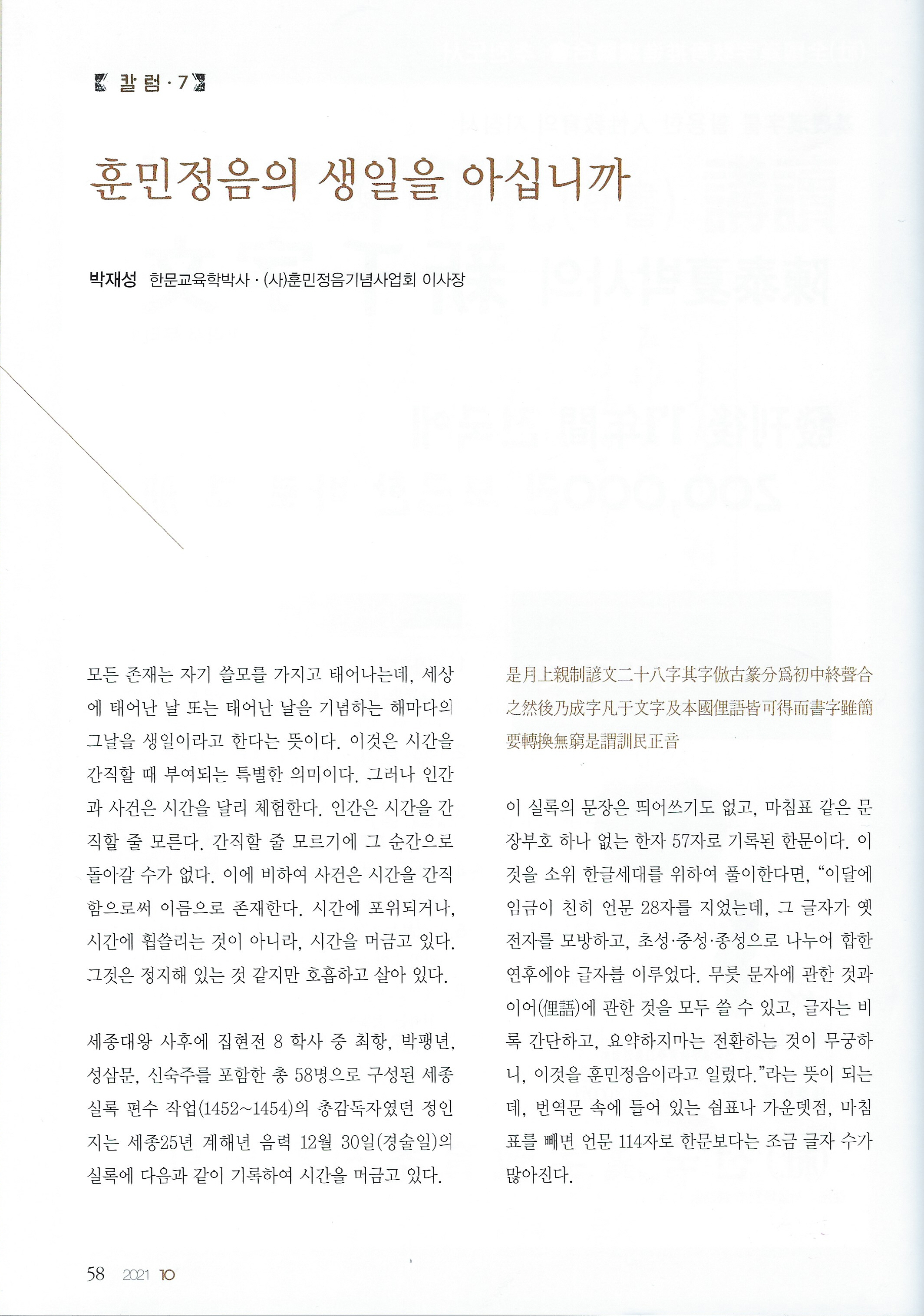 [월간서예문인화]훈민정음의 생일을 아십니까?