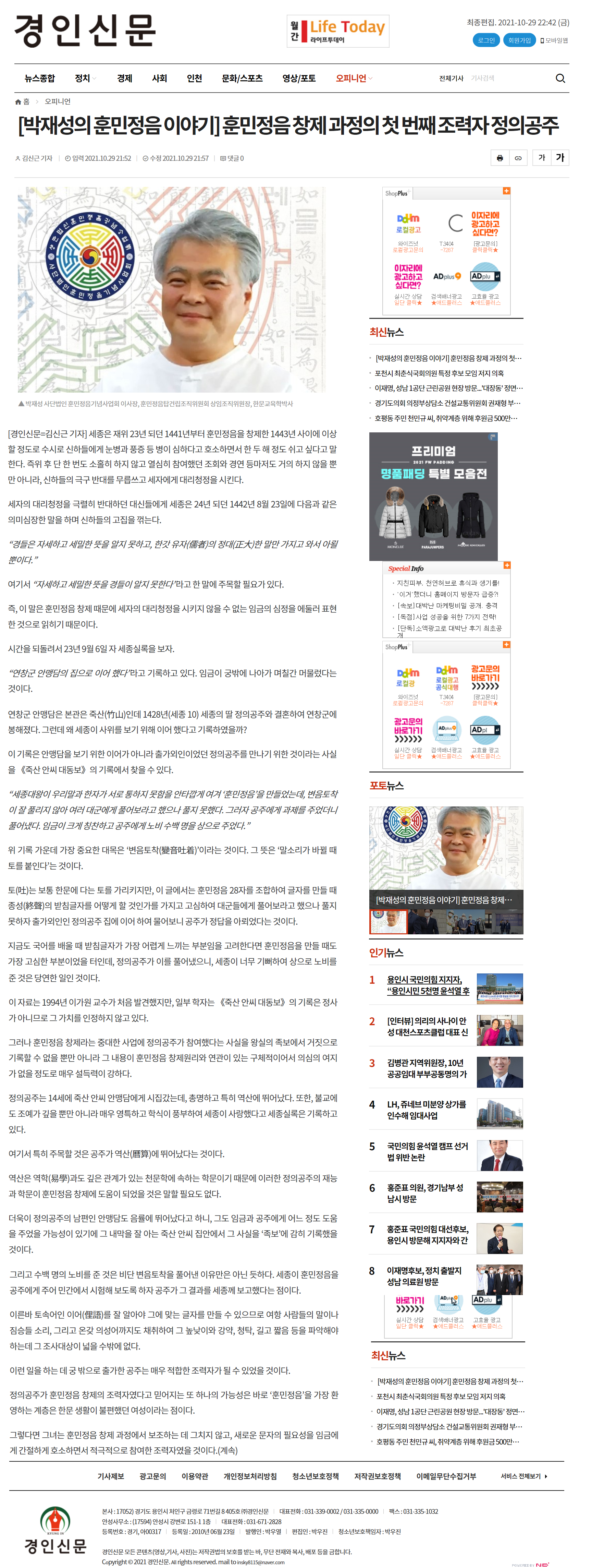 [경인신문] 훈민정음 창제과정의 첫번째 조력자 정의공주