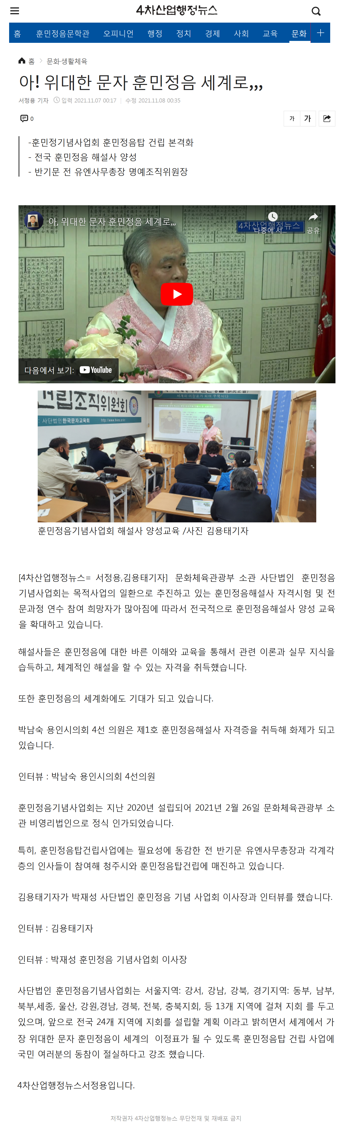 [4차산업행정뉴스] 아! 위대한 문자 훈민정음 세계로..