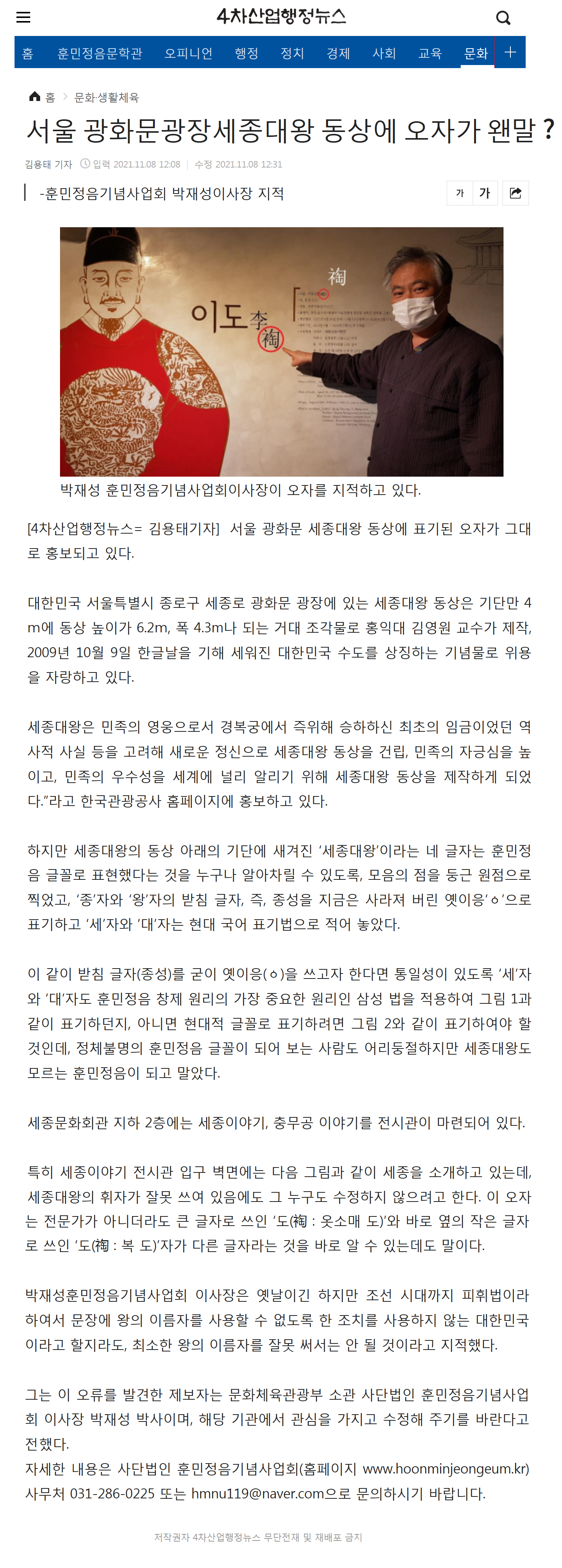 [4차산업행정뉴스] 광화문광장 세종대왕 동상에 오자가 왠말...