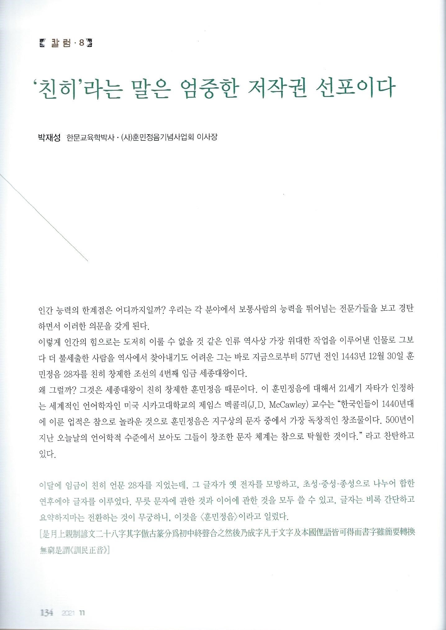 [월간서예문인화] 친히라는 말은 엄중한 저작권 선포이다.