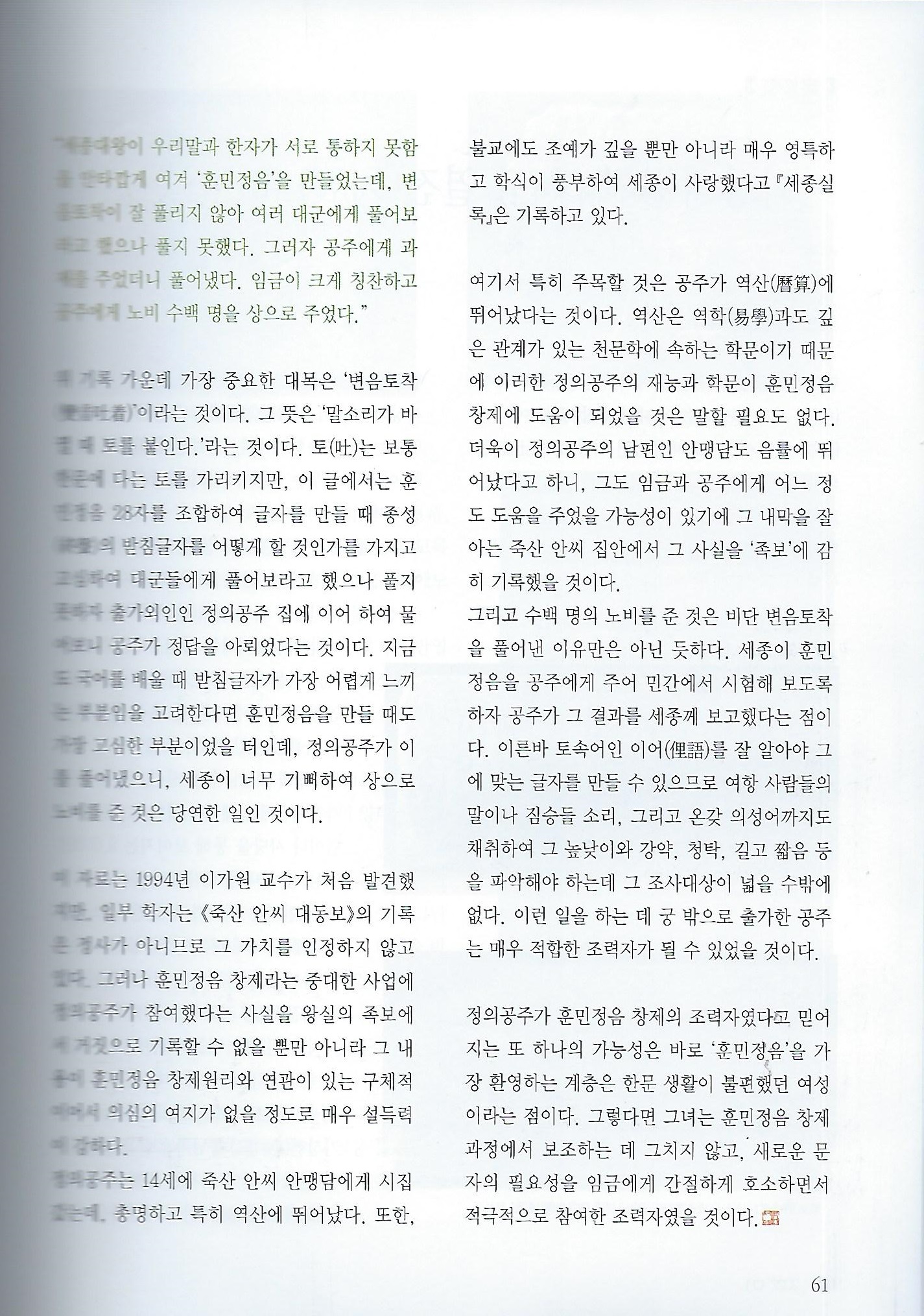 [월간서예문인화] 훈민정음창제과정의 첫 번째 조력자 정의공주