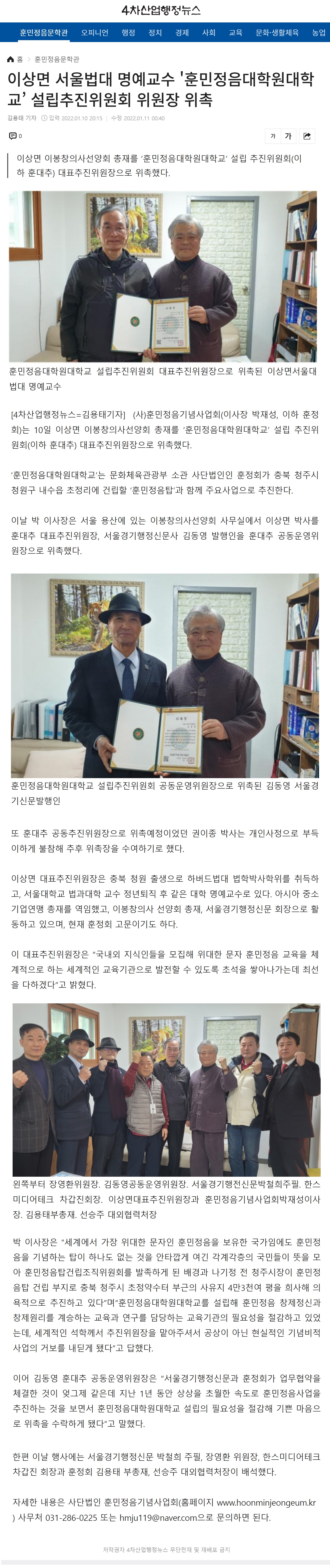 이상면 서울법대 명예교수 '훈민정음대학원대학교’ 설립추진위원회 위원장 위촉 - 4차산업행정뉴스 (4ihjnews.com)