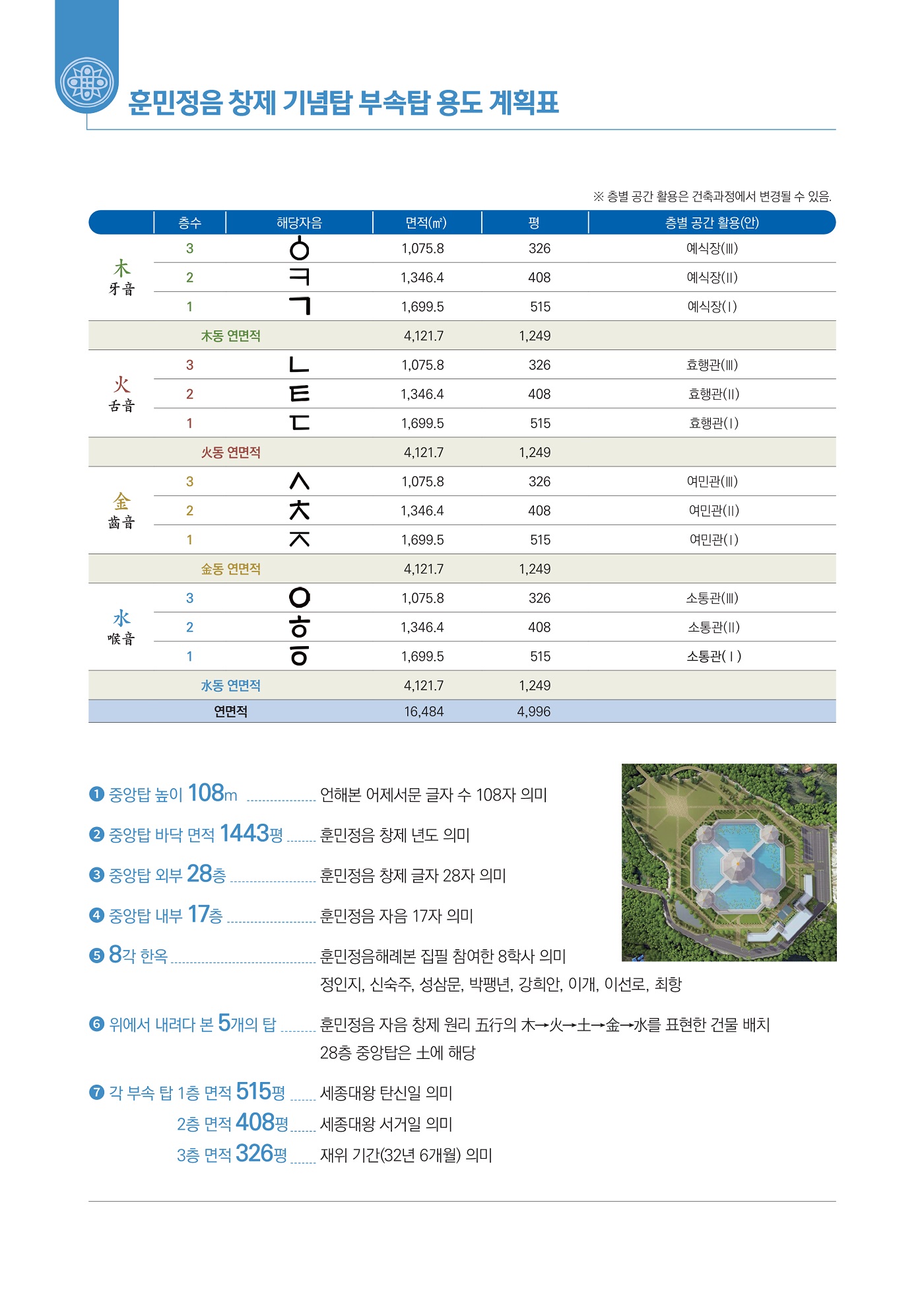 훈민정음 탑 층별 용도 계획표