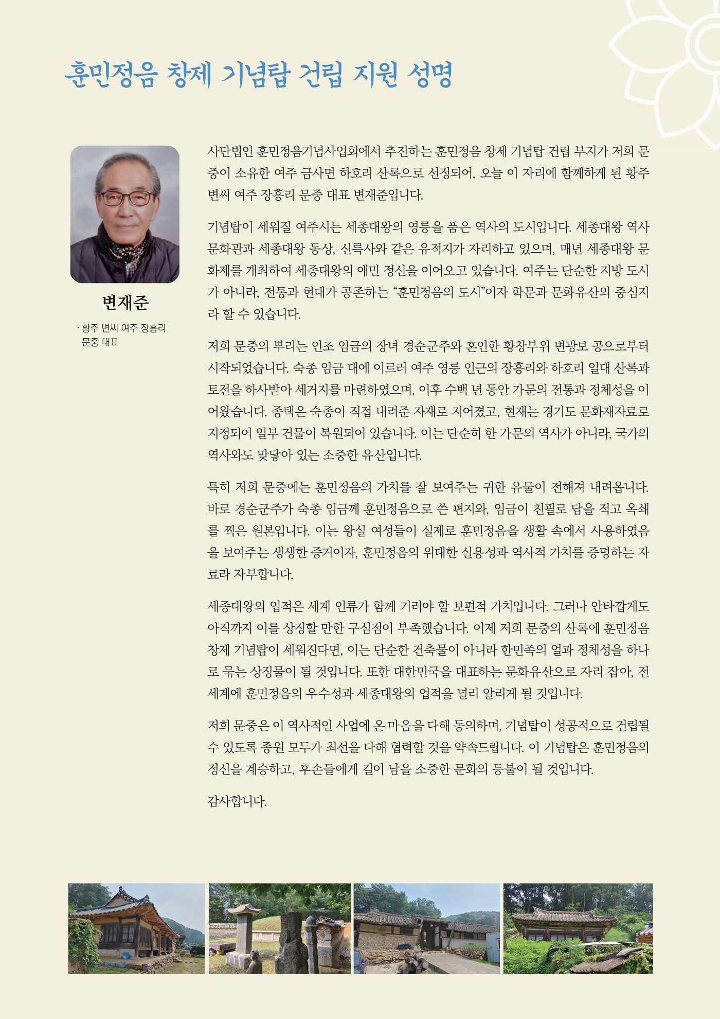 훈민정음 탑 건립 선포식 축사 - 지태용