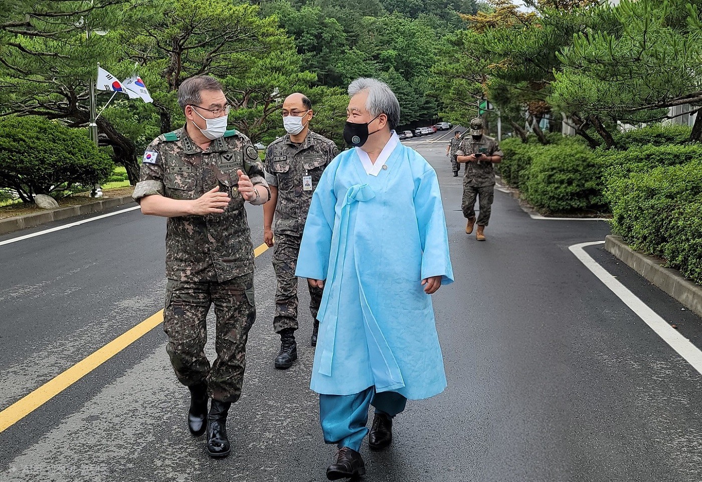 2021년 6월 16일, 박재성 이사장은 제8군단 군단장 강창구 중장의 초청으로 부대를 방문하였다. 군단장실 환담 후 고급 지휘관 40여 명을 대상으로 「훈민정음의 오해와 진실」을 주제로 안보 특강을 진행하였으며, 군 발전 및 장병 복지 지원 공로로 감사패를 수여받았다.