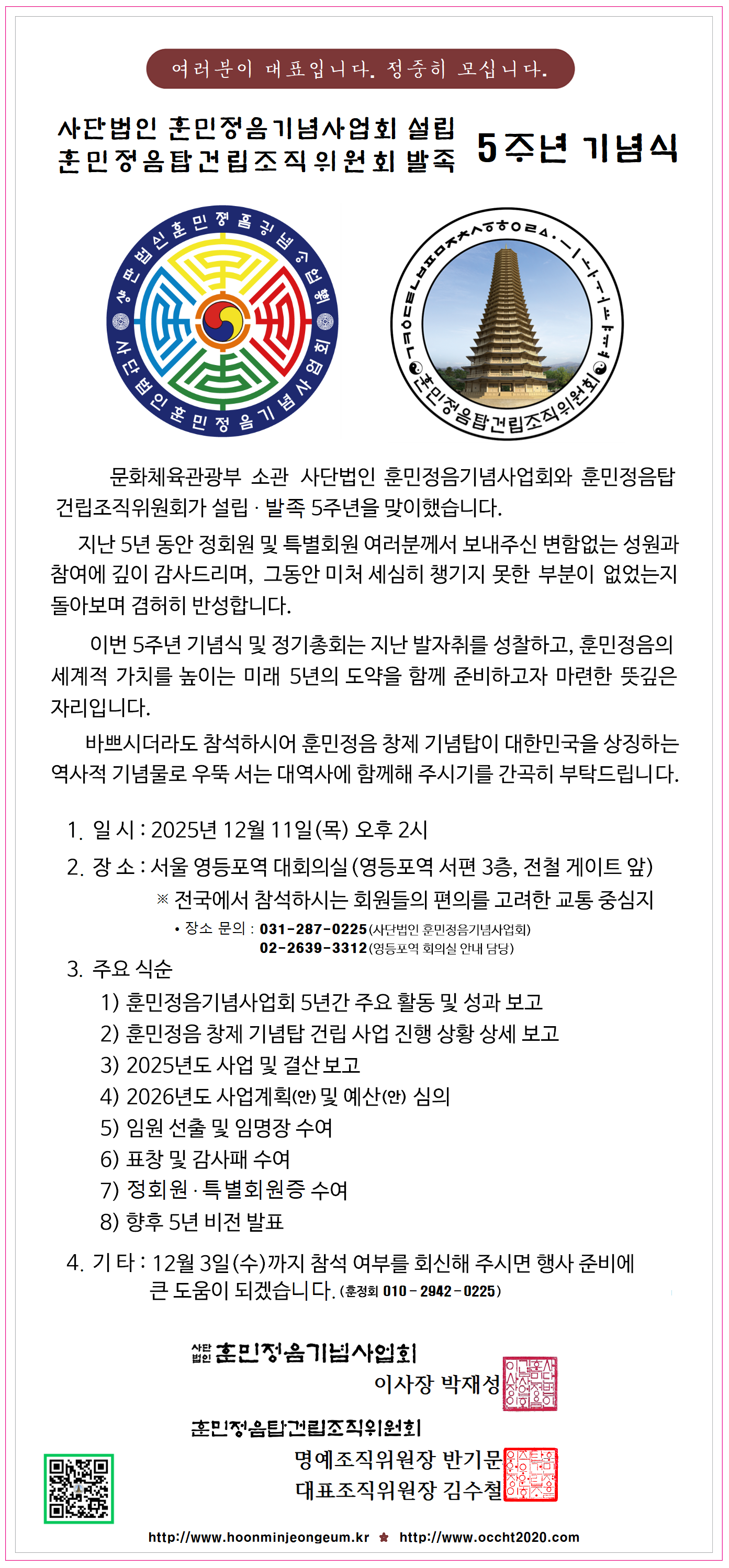 훈민정음탑건립조직위원회 발족 5주년 기념식