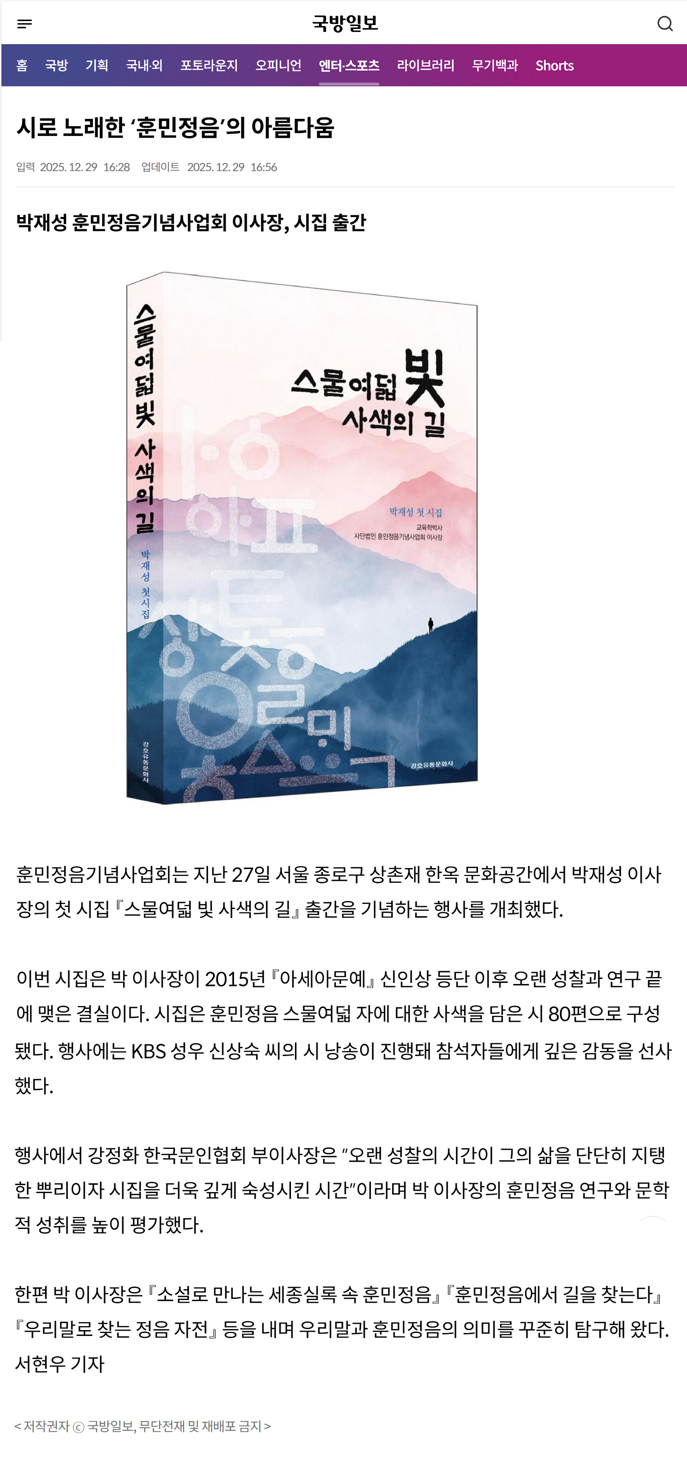 [국방일보] 시로 노래한 '훈민정음'의 아름다움