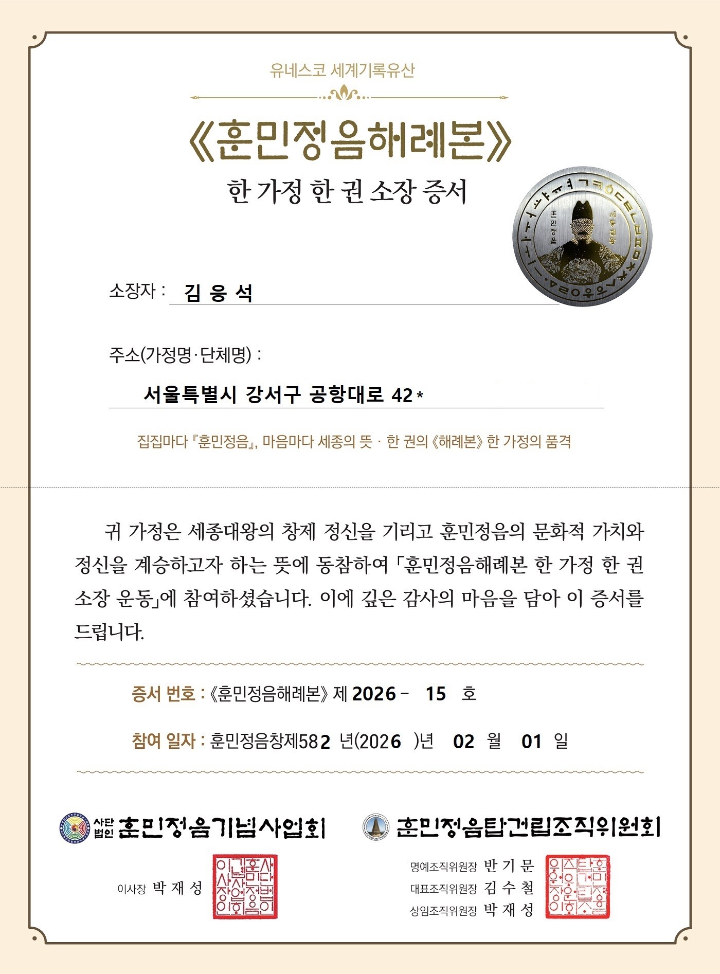 《해례본》 15호 소장자 김응석 영1208 엔터테인먼트 대표