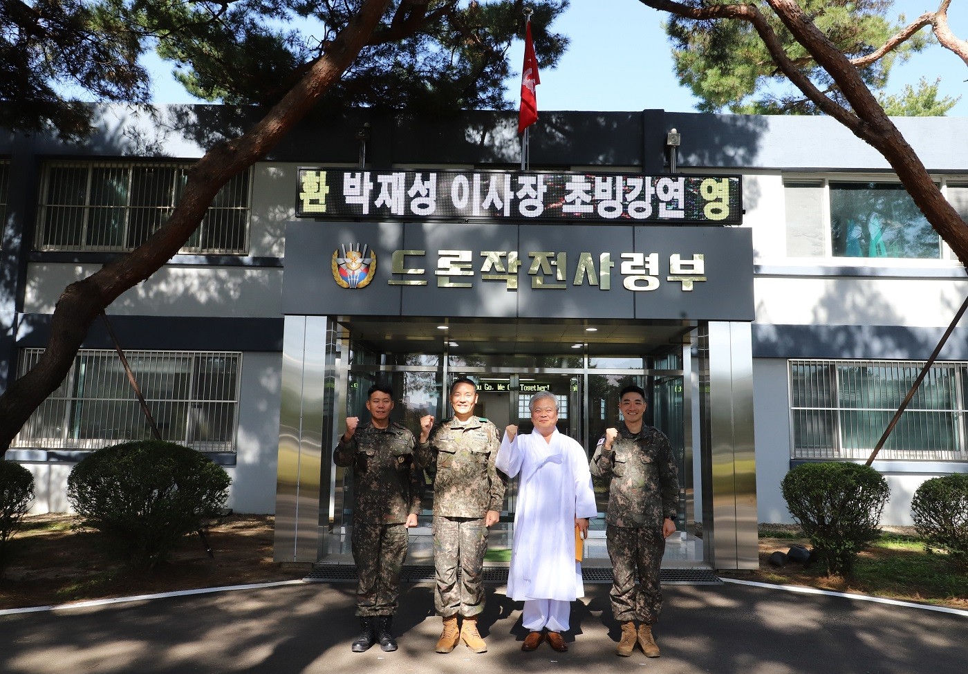 2023년 10월 4일, 박재성 이사장은 드론작전사령부 사령관 이보형 소장의 초청으로 부대를 방문하였다. 이날 장병 150여 명을 대상으로 「훈민정음의 오해와 진실」 특강을 진행하였으며, 창설 이후 첫 외부 초청 강연 사례로 기록되었다. 박재성 이사장은 직접 휘호한 도자기 서예 작품을 증정하였고, 사령관은 감사패를 수여하였다.
