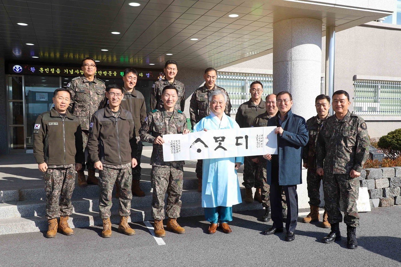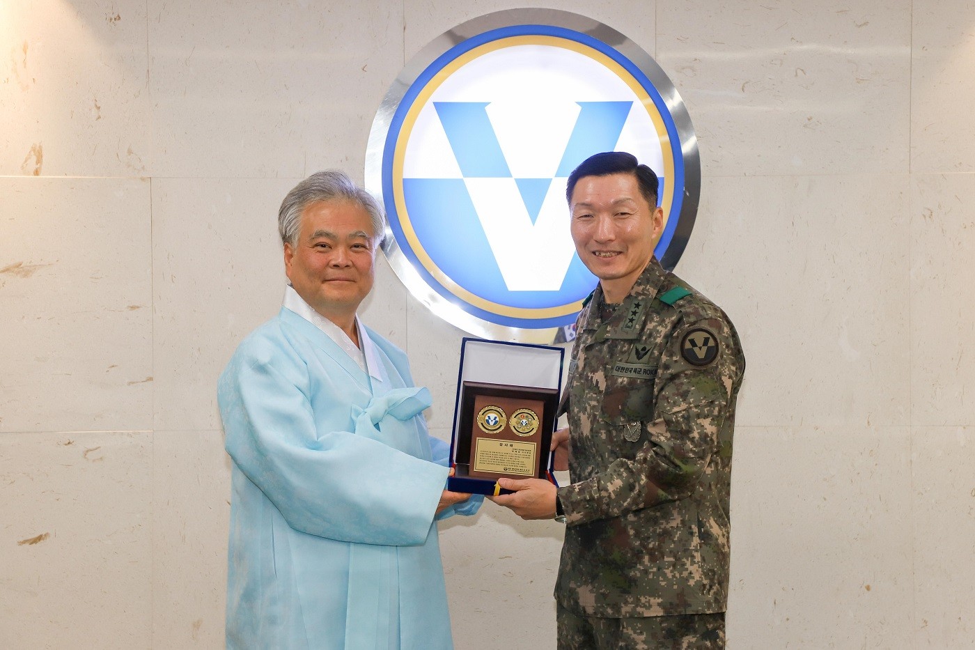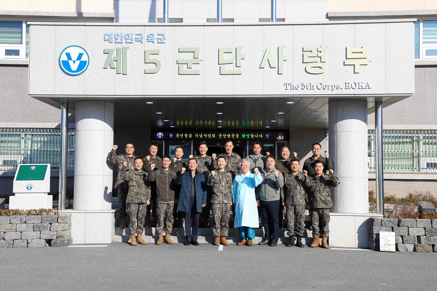 2023년 11월 13일, 박재성 이사장은 경기도 포천 소재 제5군단 군단장 김성민 중장의 초청으로 부대를 방문하였다. 이날 국가안보 및 군 발전 기여 공로로 감사패를 수여받았으며, 부대 구호 ‘사맛디–소통하다’를 직접 휘호한 서예 작품을 증정하였다. 행사에는 육군사관학교장을 역임한 강창구 예비역 중장이 동행하였다.