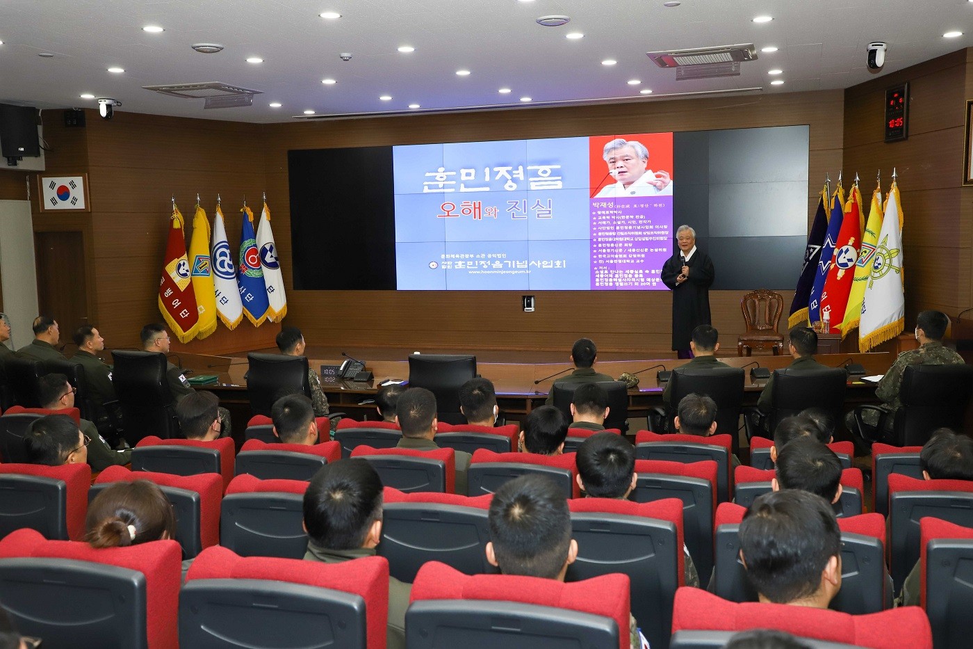 2023년 12월 19일, 박재성 이사장은 경기도 포천 소재 제5군단 군단장 김성민 중장의 초청으로 부대를 방문하였다. 이날 영관급 이상 지휘관 및 관계자들을 대상으로 「훈민정음의 오해와 진실」을 주제로 90분간 특강을 진행하였으며, 직접 휘호한 서예 작품을 군단장에게 기념 증정하였다.