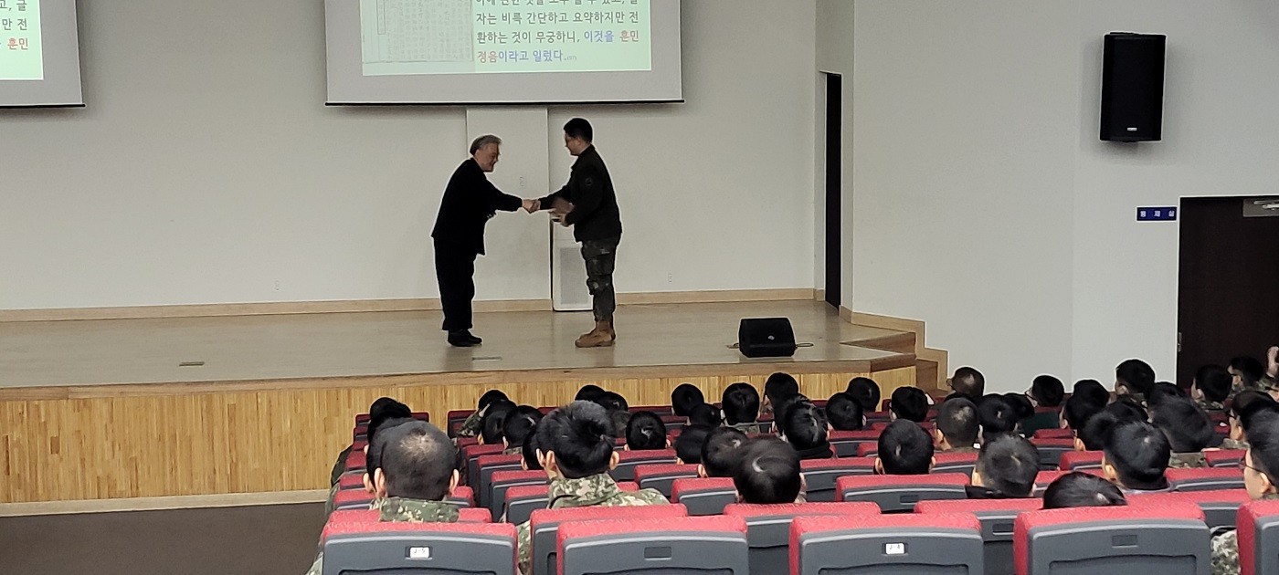 2023년 12월 22일, 박재성 이사장은 경기도 성남 소재 제170여단 예하 제3대대의 초청으로 장병 180여 명을 대상으로 「훈민정음의 오해와 진실」 특강을 진행하였다. 대대장 김봉주 중령에게 직접 휘호한 서예 작품을 증정하였으며, 모범 장병에 대한 격려가 이루어지는 등 장병 사기 진작의 계기를 마련하였다.