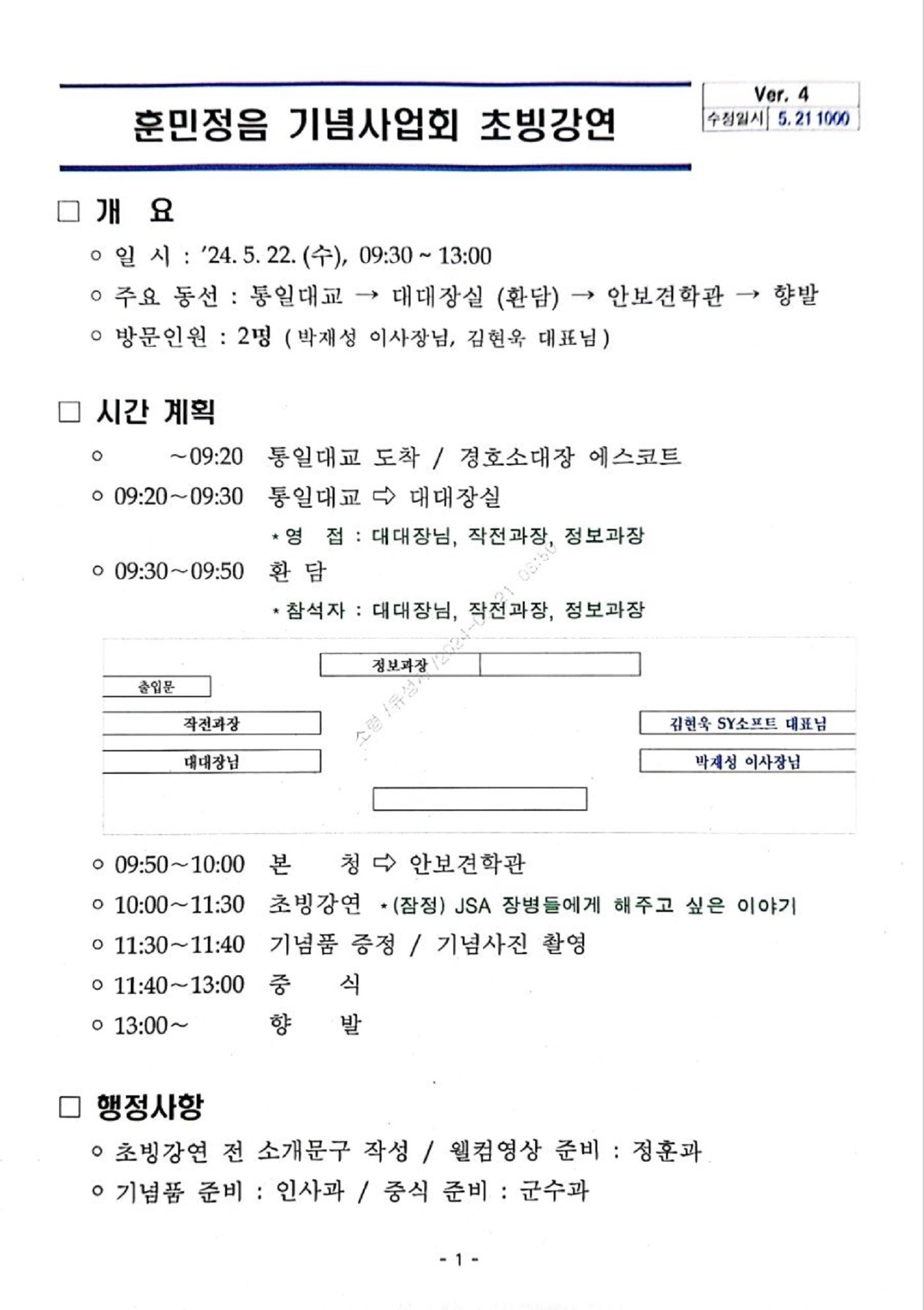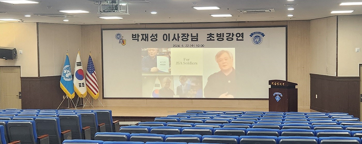 2024년 5월 22일, 박재성 이사장은 JSA경비대대 대대장 김태우 중령의 초청으로 부대를 방문하여 지휘관 및 장병 250여 명을 대상으로 「훈민정음의 오해와 진실」을 주제로 90분간 특강을 진행하였다. 이날 『소설로 만나는 세종실록 속 훈민정음』과 『108인의 훈민정음 글모음』 각 50권을 기증하였으며, 대대장은 장병 독서 권장 및 독후감 공모 참여 계획을 밝혔다. 또한 JSA 공동경비구역 내에서의 민간인 초빙 강연은 창설 이후 최초 사례로, 제1호 감사장과 기념패를 수여받았다.