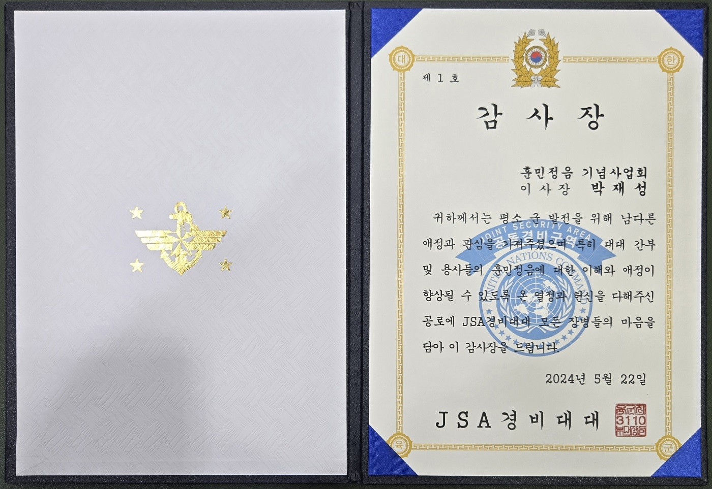 JSA경비대대 초청 특강 및 제1호 감사장 수여
