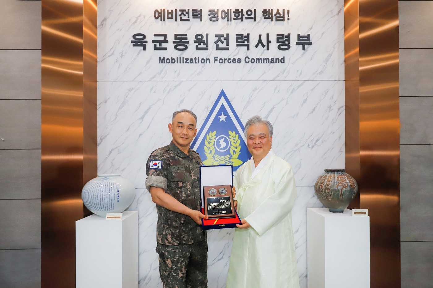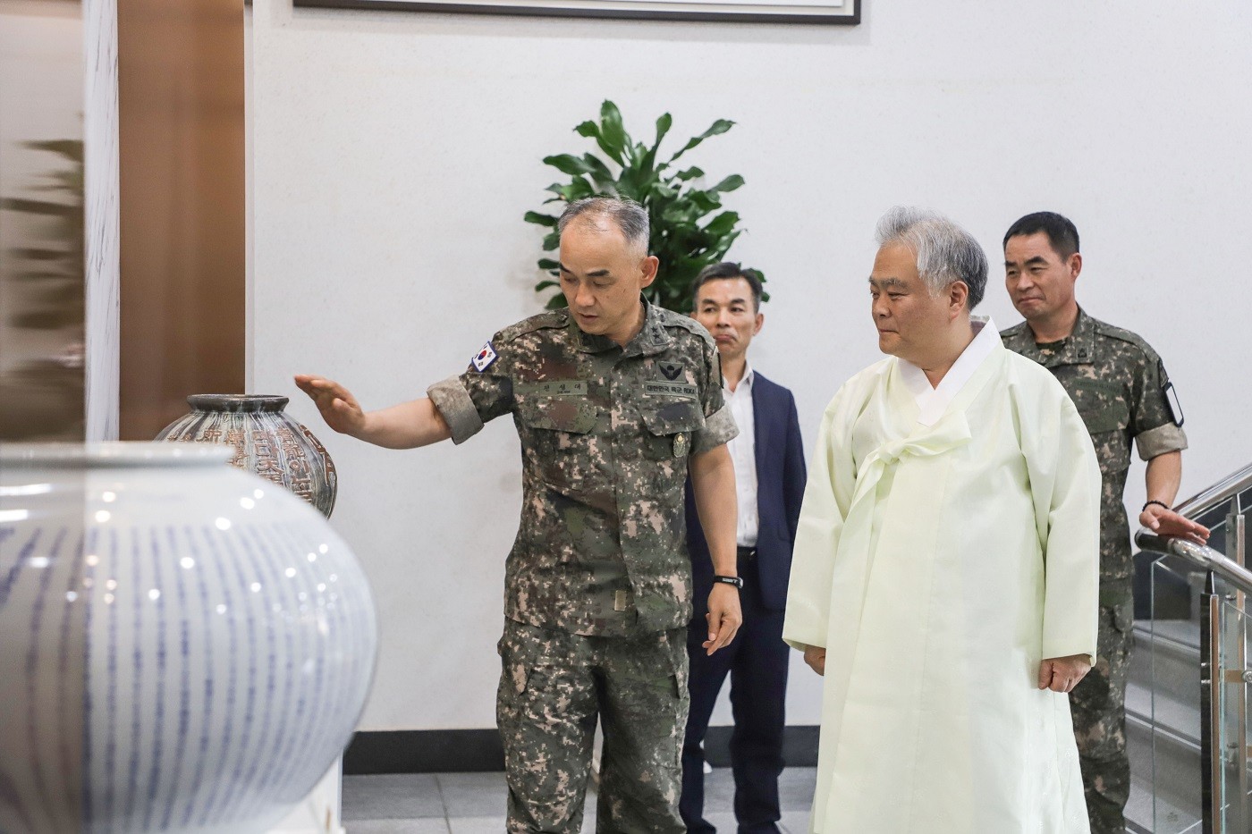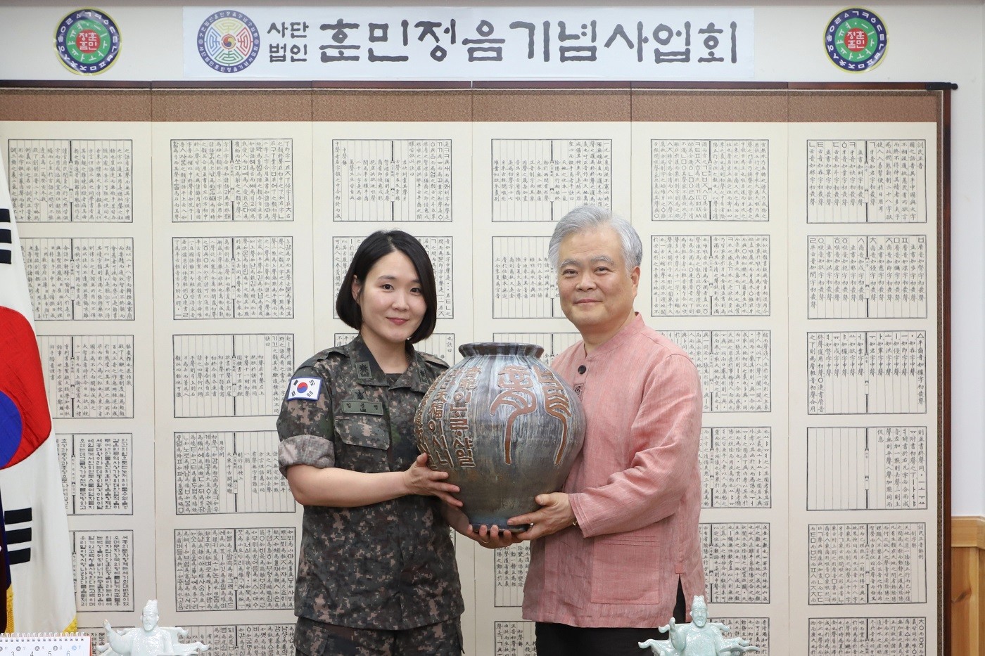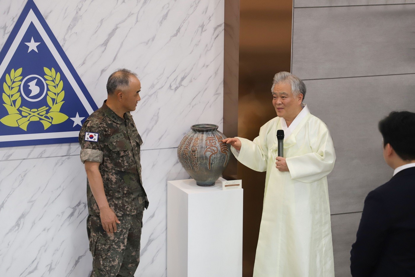 앞서 2월에는 영관급 이상 지휘관 및 군무원 70여 명을 대상으로 「훈민정음의 오해와 진실」 특강을 진행하였으며, 7월 초에는 ‘청룡이 나르샤 일마다 천복이시니…’ 문구를 직접 휘호한 대형 서예 도자기 작품을 기증하였다.