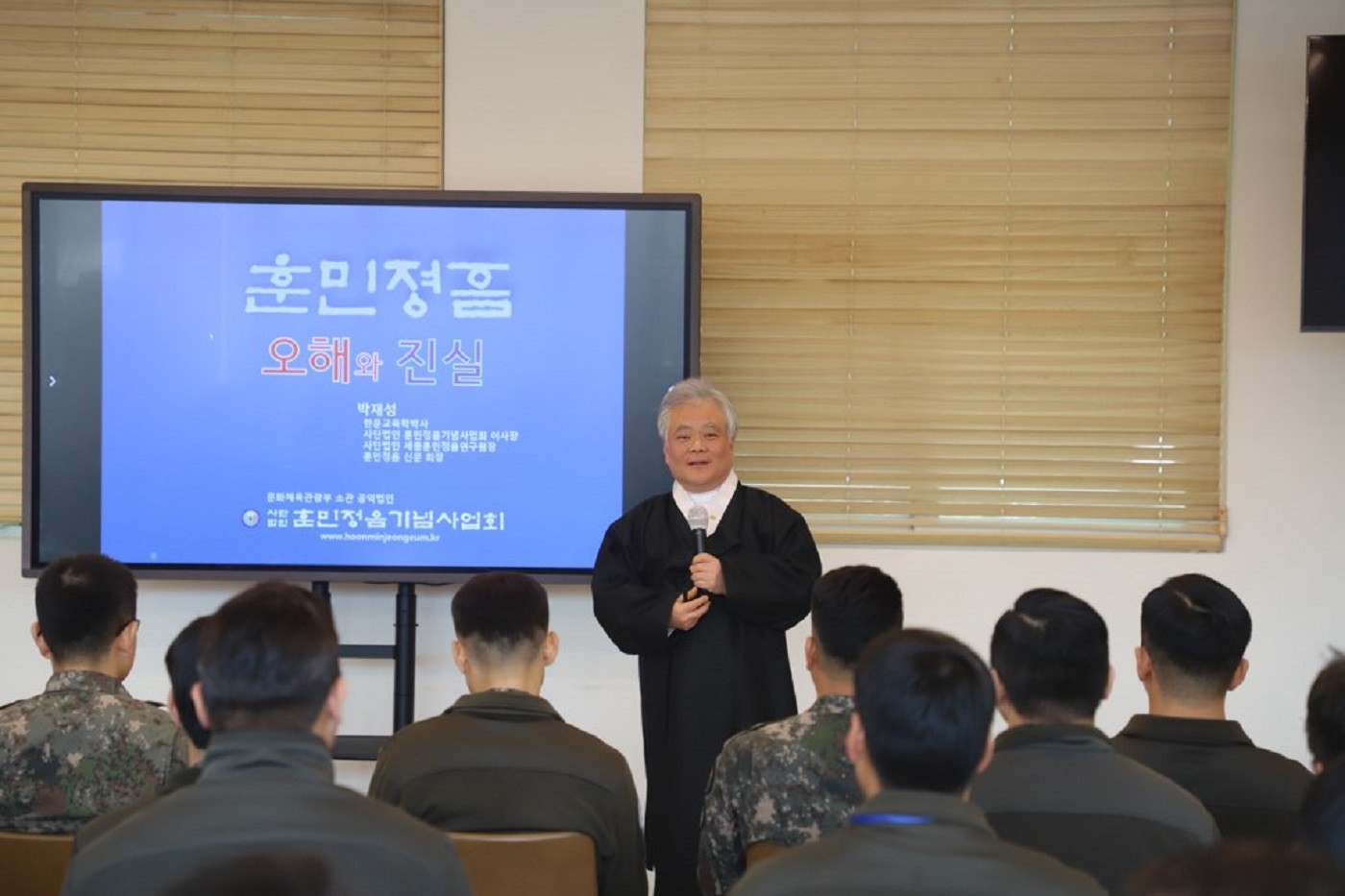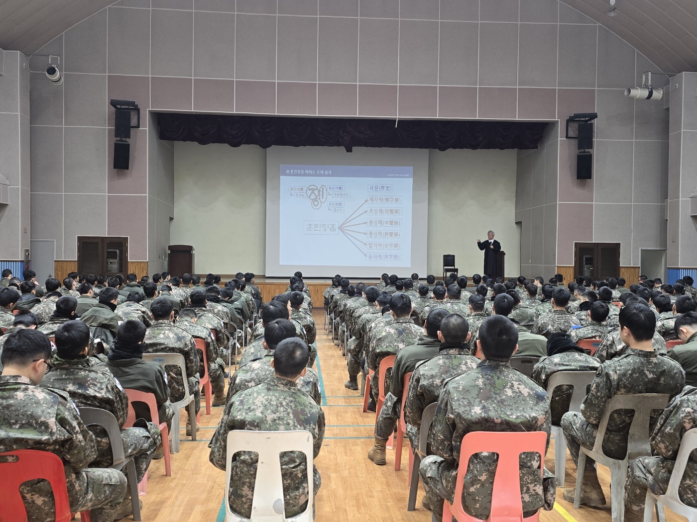 2024년 12월 13일(금), 사단법인 훈민정음기념사업회 박재성 이사장은 경기도 포천시에 위치한 제5공병여단 여단장 이혁정 준장의 초청을 받아 부대를 방문하였다. 오전에는 간부 98명을 대상으로, 오후에는 장병 210여 명을 대상으로 각각 90분간 「훈민정음 오해와 진실」 특강을 진행하였다. 이혁정 여단장은 감사장과 함께 개인 소장 중이던 코인 20여 점을 기증하며 깊은 감사의 뜻을 전하였다.